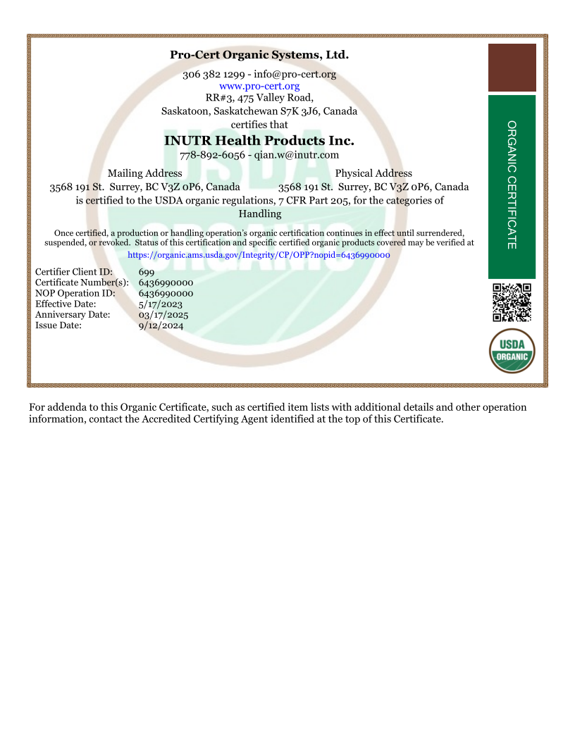 U.S. certification for organic products, banning synthetic chemicals, GMOs, and irradiation.