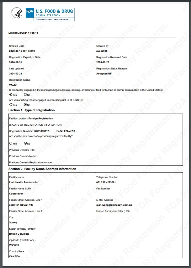 U.S. regulatory compliance (not a certification) for food, drugs, and medical devices.